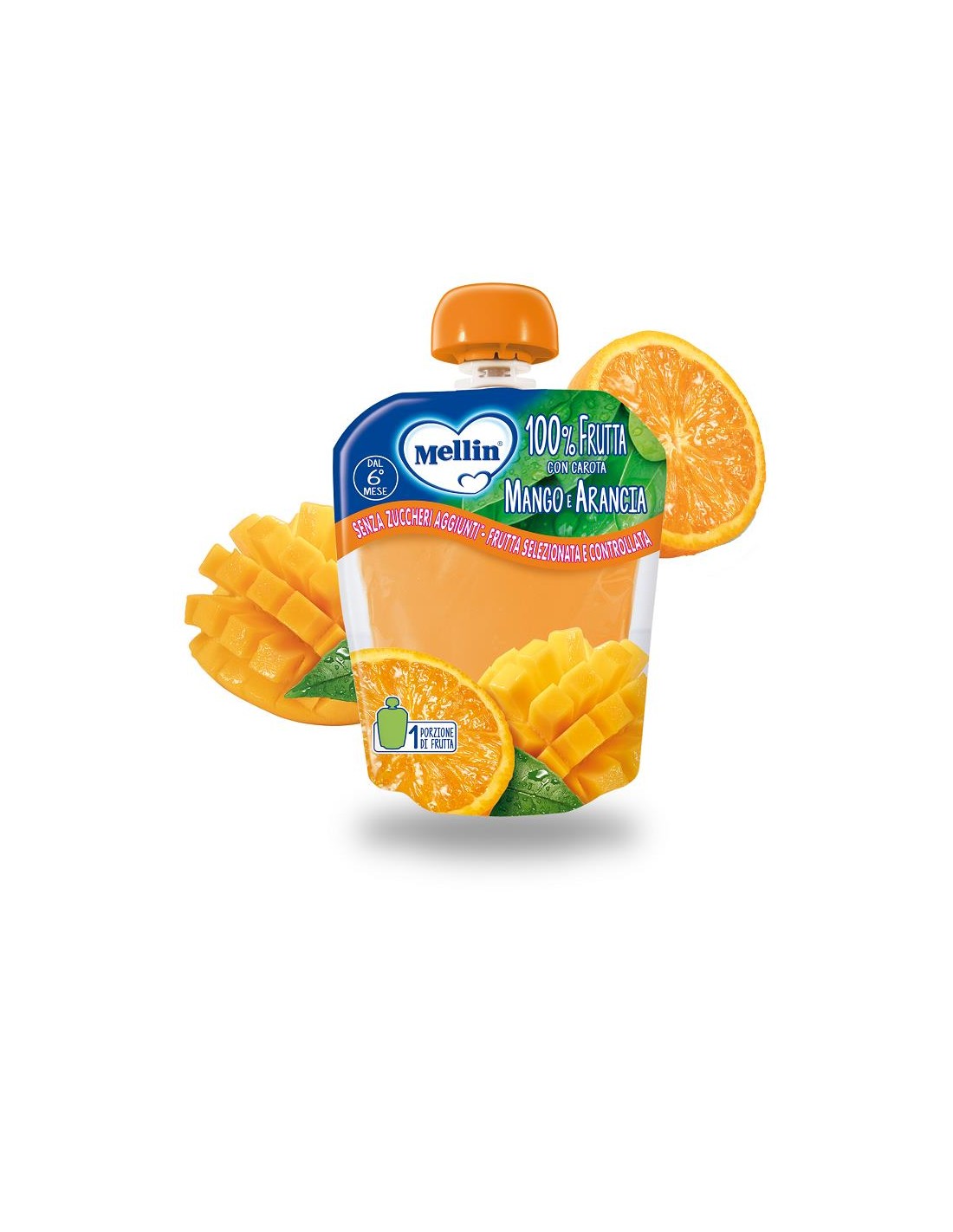 Purea di mela (61%), purea di mango (20%), polpa di arancia (12%), purea di carota(7%).