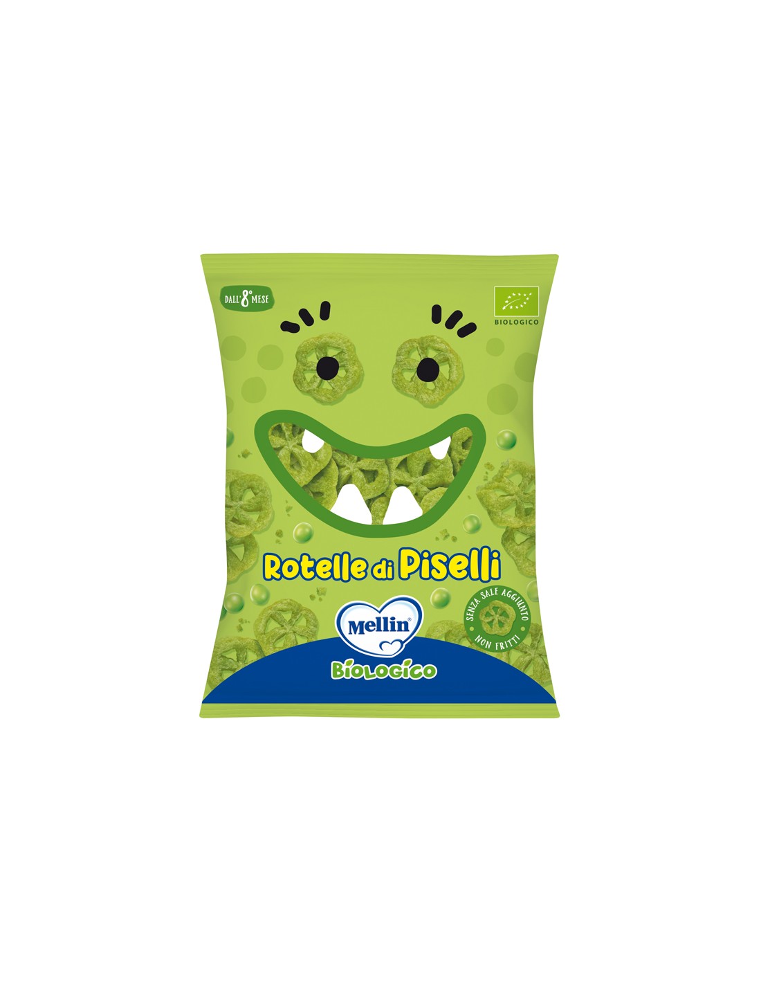 Merenda a base di piselli e mais, biologica, indicata a partire dall'8° mesecompiuto, salvo diverso parere del pediatra.