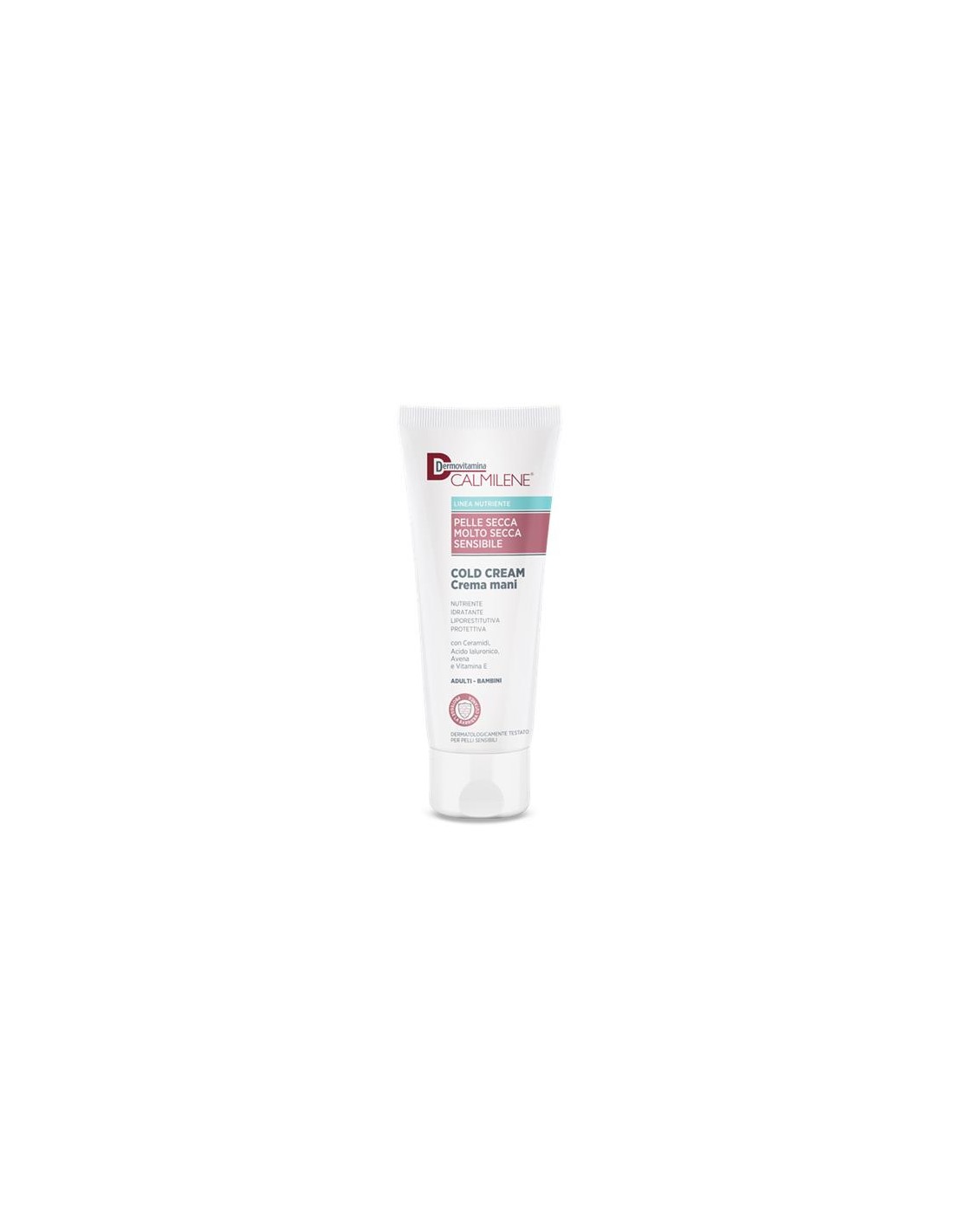 Crema mani nutriente ed idratante. Aiuta a prevenire i danni alla pelle delle manicausati da agenti esterni e a ripristinare la barriera protettiva della pelle. Donasollievo alle mani secche e screpolate. Dermovitamina Calmilene Cold Cream Crema Manicontiene un complesso di ceramidi che agiscono sinergicamente imitando la strutturalipidica dello strato esterno della pelle, per una maggiore idratazione e protezioneripristinando la barriera cutanea. L'acido Ialuronico assorbe e trattiene l'acqua sullasuperficie cutanea, svolgendo un’azione che contrasta la disidratazione eproteggendo la pelle grazie alla sua azione filmante. Il complesso lipidico di avenaripara e rinnova la barriera lipidica della pelle. Infine la vitamina E allevia eammorbidisce la cute secca e ruvida.