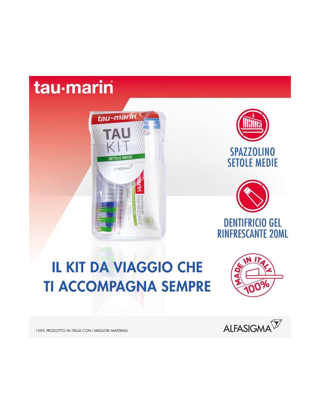 Kit da viaggio contenente dentifricio e spazzolino per una puliziaefficace in qualsiasi momento della giornata.