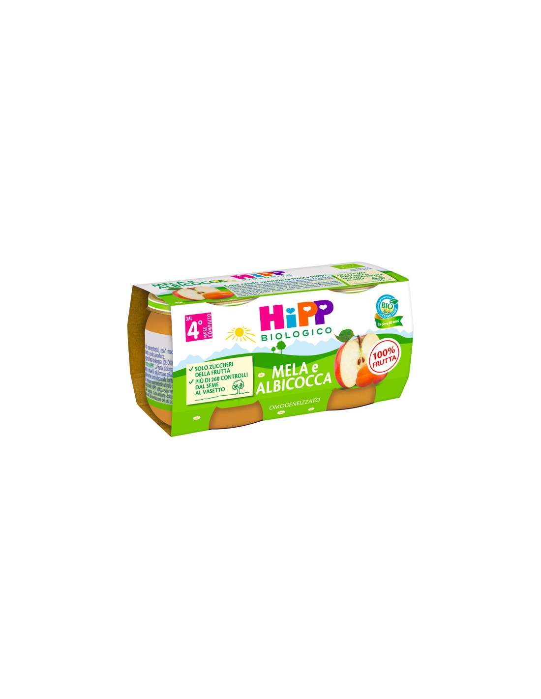 HIPP BIO OMOGENEIZZATO ALBICOCCA E MELA 2 X 80 GR