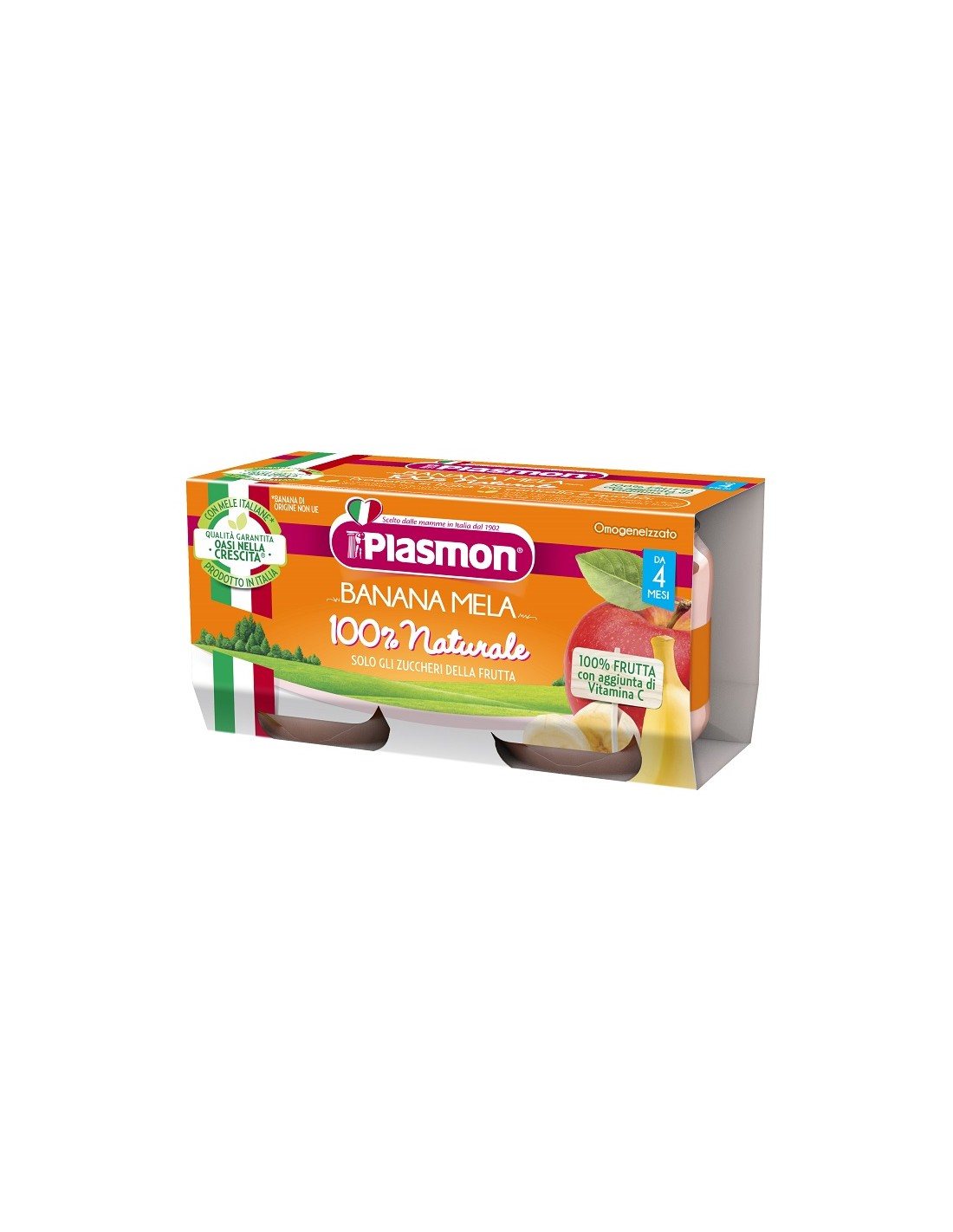 Prodotto omogeneizzato a base di banana e mela. Prodotto indicato a partire dal 4°mese compiuto, salvo diverso parere del pediatra.