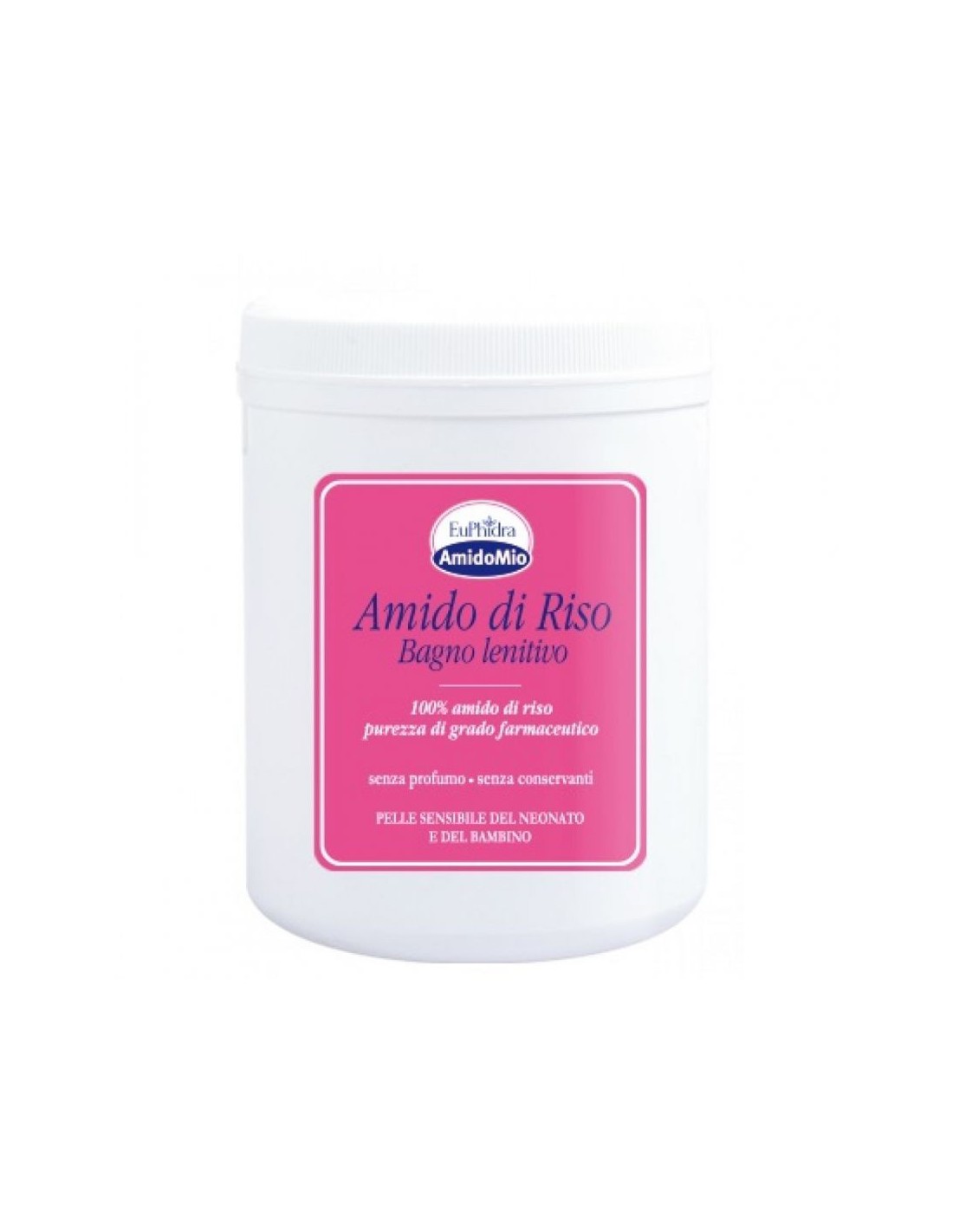 Amido di riso puro al 100%. Rapido ristoro per la pelle delicata di bambini e adulti.Polvere da sciogliere in acqua per un bagnetto rinfrescante e idratante per i bambini.Lenisce e protegge la cute sensibile. Dona un rapido sollievo per la pelle arrossata epruriginosa.
