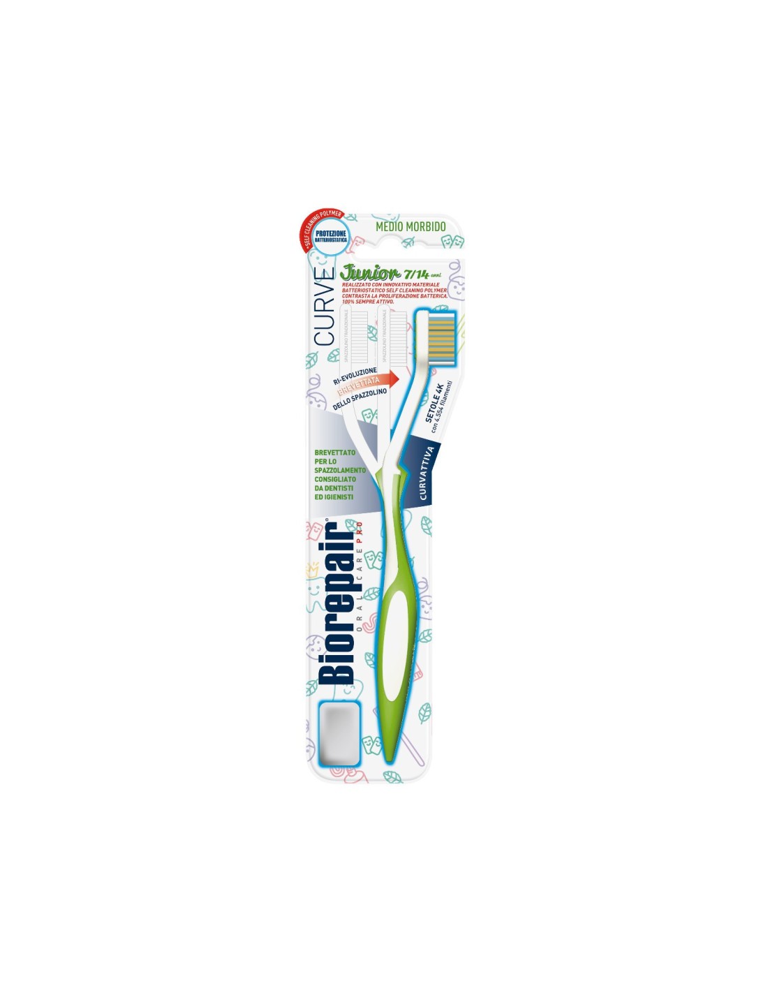 Spazzolare i denti per almeno 2 minuti 2 volte al giorno dalla gengiva verso il dente.L'uso quotidiano combinato dello spazzolino Biorepair CURVE Protezione Totale con ildentifricio Biorepair Total Protective Repair garantisce una protezione completa daplacca, tartaro e carie.
